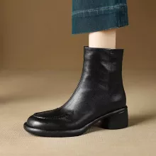 Built with premium materials and thoughtful craftsmanship, these boots offer everything you need for daily winter wear. Genuine leather on the upper, shaft, and lining adds durability and softness, while the round-toe shape ensures all-day comfort. The 1.77-inch heel provides a subtle lift without sacrificing stability, making them ideal for both long workdays and relaxed weekends. A sturdy rubber outsole offers reliable traction, and the zip closure allows for quick, easy wear.