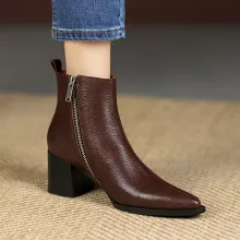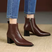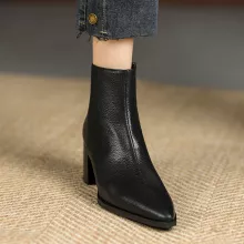 Made with a high-quality genuine leather upper and supported by a durable rubber outsole, these boots are built for long-lasting wear. The soft short-plush lining and insole keep your feet warm during chilly days, making them ideal for winter use. Featuring a smooth side zipper, they are easy to slip on and off, while the sturdy 2.36-inch heel adds height without sacrificing comfort. With a sleek ankle-height design and solid finish, these boots complement jeans, dresses, skirts, and more.