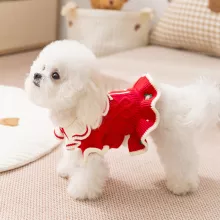 Unlike ordinary pet clothes, this piece is thoughtfully designed with a sweet silhouette that feels both fashionable and practical. The wool material offers natural warmth, while the soft texture is gentle on your pet’s skin. The embroidered flower detail and skirt-style collar create a princess-inspired look that instantly stands out, making your pet the center of attention during the holiday season.