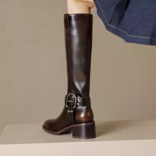 Made with a split leather upper and soft flannel lining, these boots offer durability and comfort with every step. The chunky square heel—about 2 to 3 inches high—adds a touch of height while ensuring stable support for all-day wear. A smooth side zipper makes them easy to slip on and off, while the sleek solid design complements any outfit, from casual jeans to elegant winter dresses.