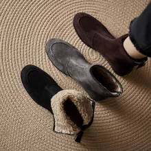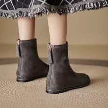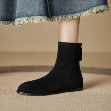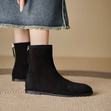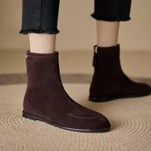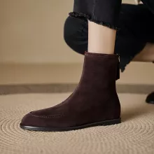 These short suede boots are perfect for winter’s casual moments — from cozy weekends to effortless daily wear. Their solid, minimalist design complements any outfit, whether jeans, leggings, or a warm wool skirt. The natural suede texture and subtle splicing detail add a touch of refinement, making them as stylish as they are practical. With the cushioned latex foam insole, every step feels supported and soft, even on long days out.