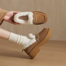 Step into winter with confidence and style in these beautifully crafted suede platform loafer pumps. Designed for women who love a mix of classic charm and modern comfort, these shoes bring a refined retro look that never goes out of fashion. The soft cow suede upper delivers a rich, luxurious feel, while the round toe design creates a balanced silhouette that flatters the foot and allows comfortable movement throughout the day.