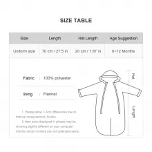 Made from high-quality polyester with a smooth tatting weave, this winter romper offers a perfect blend of softness and durability. Its waterproof and windproof outer layer protects your child from chilly breezes and unexpected splashes, while the plush interior helps maintain consistent warmth. With long sleeves, a secure zipper closure, and an O-neck design, dressing and undressing your baby becomes quick and easy.