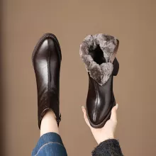 Step into the cold season with elegance and comfort. These luxurious winter ankle boots are crafted from genuine cow leather and lined with ultra-soft wool to keep your feet warm, cozy, and stylish all winter long. Designed with a modern square heel and a chic round toe, they offer a perfect balance of fashion and function. Whether you’re heading to work, meeting friends, or strolling through snowy streets, these boots deliver both beauty and practicality.