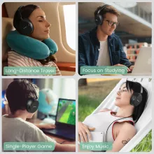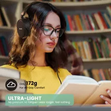 Comfort matters, especially during long listening sessions. Weighing only 0.38 lb, these headphones feel almost weightless on your head. The adjustable headband easily fits different head sizes, while the soft memory foam ear cushions gently wrap around your ears. Breathable, skin-friendly materials help reduce heat and pressure, so you can stay comfortable for hours without distraction.