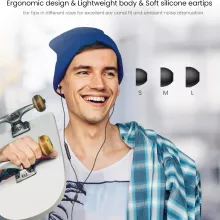 - Comfort-fit earbuds made with soft silicone for extended wear.