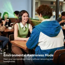 Equipped with powerful 40 mm dynamic drivers, these headphones deliver the full spectrum of sound—from deep, thumping bass to crisp, detailed highs. The wide soundstage makes every playlist, movie, or podcast feel richer and more engaging. When you need awareness of your surroundings, simply switch to Transparency Mode to stay alert without removing your headphones.
