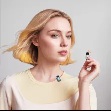 - Wireless lavalier microphone with charging case for easy storage and power