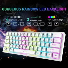 Unlock a new level of control and comfort with this wireless gaming keyboard and mouse combo. Designed with an ergonomic 61-key layout and vibrant rainbow LED backlighting, this set brings both style and performance to your desktop. The compact size saves valuable space while giving you fast, accurate keystrokes that feel natural during long gaming sessions or everyday work. Paired with a rechargeable mouse featuring a powerful 4000mAh battery, you get lasting performance without constant charging.