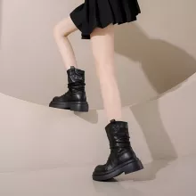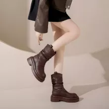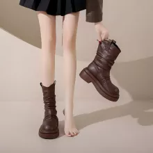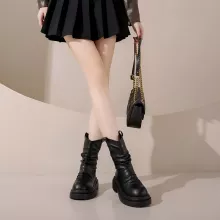 These boots are more than just footwear — they’re a fashion statement. The slip-on style makes them ideal for busy mornings, while the sturdy thick heel ensures balance and comfort without sacrificing elegance. Whether you’re heading to the office, a weekend brunch, or an evening stroll, these ankle boots adapt to your lifestyle with ease. The modern pleated design sets them apart from plain boots, giving your outfit a chic finish.