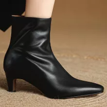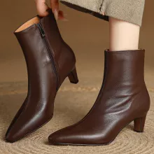 Elevate your wardrobe with these elegant genuine leather ankle boots, designed to bring effortless style and comfort to your every step. Crafted for women who appreciate refined footwear, these pointed toe ankle boots feature high-quality cow leather uppers, a sleek 5.5-inch shaft height, and a slim 2.2-inch (5.5cm) high heel that perfectly balances elegance with wearability.