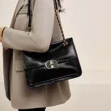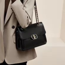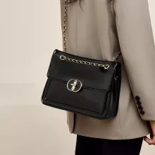 Designed to cater to every fashion-forward woman, this bag features a square shape with a sturdy flap pocket and a gold-tone chain strap that adds a sophisticated touch to its simple yet modern style. The soft texture of the leather makes it comfortable to carry, while its practical compartments ensure that your essentials are organized with ease. With a convenient shoulder strap length of 24.4 inches, you can wear it comfortably on your shoulder or across your body.
