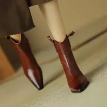 These boots are designed to deliver the perfect balance between fashion and function. The sleek silhouette and retro western flair make them stand out, while the genuine leather construction ensures durability and long-term comfort. The ankle height offers versatile styling — pair them with jeans, skirts, or dresses for an instantly chic winter look.
