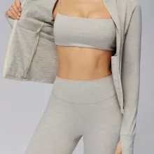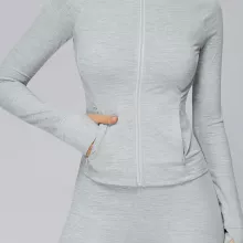 What sets this jacket apart is its perfect balance of style, stretch, and function. The high-elastic fabric adapts easily to your body, offering a true-to-size fit that feels secure but never restrictive. Thoughtfully designed pockets let you carry essentials like keys or cards hands-free, so you can focus fully on your movement. The classic round neckline and streamlined silhouette make it easy to pair with leggings, joggers, or active shorts.