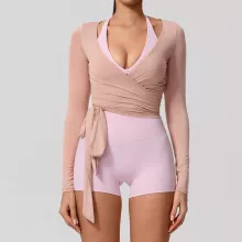 Made from a premium blend of breathable rayon and flexible elastane, this top feels smooth against your skin while offering excellent stretch and recovery. The fabric helps keep you dry during movement, making it ideal for active sessions while remaining comfortable enough for casual wear. The long sleeves provide light coverage without overheating, perfect for studio workouts or outdoor activities.