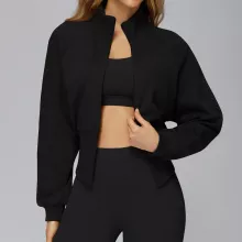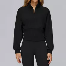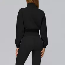 Designed for women who move with purpose, this loose-fit high-neck jacket blends comfort, warmth, and modern athletic style into one easy layer. The soft yet durable fabric feels gentle on the skin while protecting you from chilly wind, making it a reliable choice for cooler days. With its clean, pocket-free silhouette, this jacket looks sleek and minimal, perfect for both workouts and casual wear.