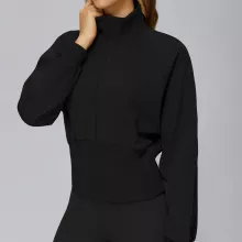 The elastic, breathable fabric stretches naturally with your body, giving you full freedom of movement whether you’re flowing through yoga poses, heading out for a brisk walk, or layering up for outdoor training. The high neckline adds extra warmth and coverage, helping block cold air without feeling heavy or restrictive. Its moisture-wicking and quick-dry properties keep you feeling fresh, even during intense activity.