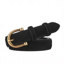 Expertly made from high-quality genuine suede leather, this belt is smooth to the touch and built to last. The 0.9 inch (2.3 cm) width offers a sleek, flattering fit that accentuates the waistline without overwhelming your outfit. A polished buckle adds a modern twist to its timeless charm, making it a must-have accessory for any fashion-forward wardrobe.