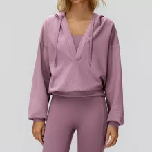 Women’s Oversized Hooded V-Neck Sports Jacket – Cozy Loose Fit for Winter