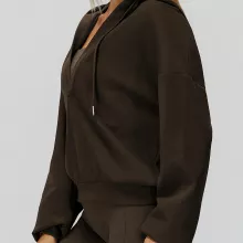 • Wide V-neck with hood for a stylish, relaxed look