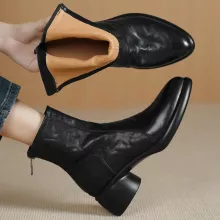 The round toe and soft structure offer a relaxed fit, while the 5cm (approx. 2 inches) round medium heel gives you just the right amount of lift for confident strides without sacrificing comfort. A stylish pleated finish adds a touch of texture, and the back zipper ensures an easy, slip-on experience – no hassle, just chic functionality. Whether you’re heading to brunch, a casual office day, or an evening stroll, these ankle boots are your go-to choice for autumn.