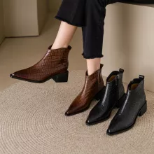 Turn heads wherever you go with these stunning Pointed Toe Chunky Heel Leather Ankle Boots. Designed for modern women who love elegance and comfort, these boots are your perfect companion for the chilly season. Crafted from genuine cow leather, they combine timeless sophistication with all-day wearability. Whether you’re dressing up for an evening out or adding flair to your casual winter outfit, these boots elevate every look with ease and charm.