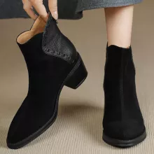 Crafted with a rich blend of genuine sheepskin and suede leather, these boots feel as luxurious as they look. The inside is lined with a short plush lining that ensures breathability and warmth — perfect for cool autumn days. With a sturdy yet stylish 2-inch (5cm) heel, these boots give you the lift you want without compromising on comfort.