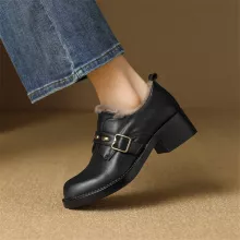 Step into the colder seasons with confidence and style in these elegant women’s winter leather loafers. Made from genuine cow leather and crafted by hand, these shoes bring together comfort, durability, and classic charm. Their soft wool lining keeps your feet warm during chilly days, while the slip-on design ensures effortless wear. With a medium square heel of about 1.7 inches, they offer the perfect balance of height and stability for all-day comfort.