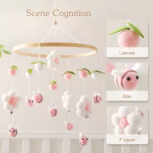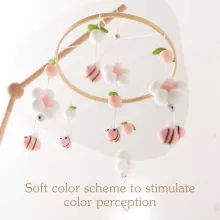 This crib bed bell is made from smooth wooden elements combined with safe plastic details, carefully sized for infant use. Measuring approximately 5.5–6.1 inches, it is perfectly proportioned to hang above a crib without overwhelming your baby’s space. The musical rattle sound is soft and comforting, never harsh, making it ideal for nap time, bedtime, or quiet play moments.