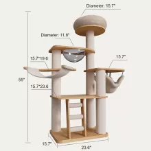 I've been on the hunt for a cat tower that could accommodate my larger cats and this product has exceeded all expectations. The sturdy wood construction is clearly designed with big cats in mind, providing ample space for them to climb and play without risk of toppling over. I'm particularly impressed by the integrated scratcher accessories which have saved our furniture from their claws! Plus, it blends seamlessly with our home decor - an added bonus.