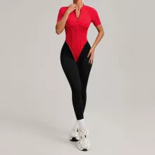 Meet your new go-to training outfit: a streamlined workout jumpsuit designed to move with you, shape with you, and stay comfortable through every session. This full-length fitness suit features a smooth zipper front, a built-in padded cup for natural shaping, and a flexible knit that hugs your curves without restricting movement. Crafted from a breathable blend of nylon and spandex, it delivers the perfect balance of stretch and support for yoga, running, gym training, or everyday athleisure.