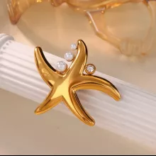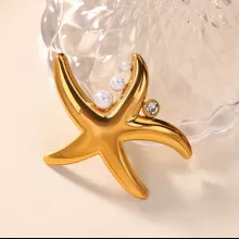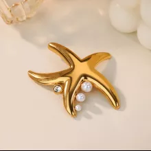 Introducing the Zircon Pearl Starfish Brooch, a timeless piece of jewelry that brings a touch of the ocean to your wardrobe. Crafted with 18K gold-plated stainless steel and adorned with sparkling zircon stones and a delicate pearl, this brooch is perfect for adding elegance to any outfit. Whether you’re attending a formal event or looking for a unique way to accessorize your everyday wear, this starfish brooch is sure to make a statement.